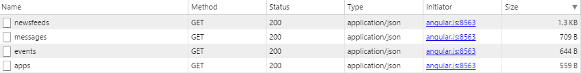 In the AngularJS app, the browser is able to retrieve apps, the news feed and all messages without any delay. This is what the user will see: